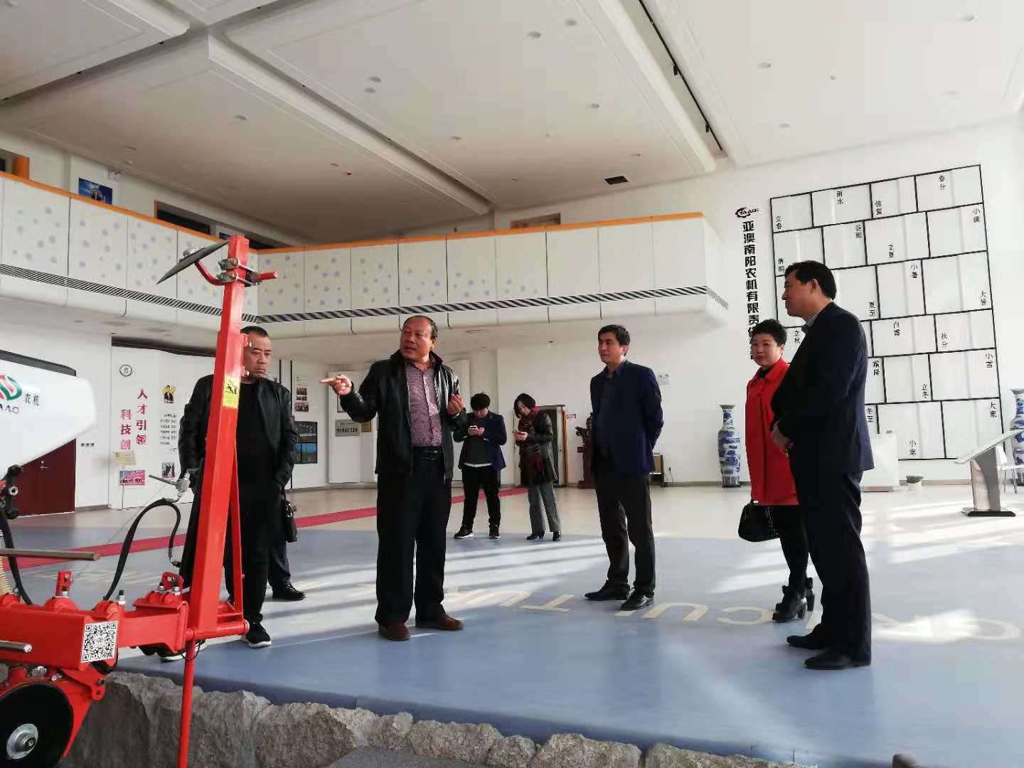 郭總首先向李軍副主席一行介紹了展廳內(nèi)展示的代表性機(jī)具,李軍副主席指出,這些機(jī)具刷新了我對農(nóng)耕機(jī)具的認(rèn)知。