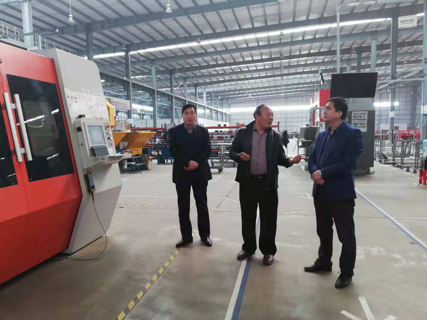 之后調(diào)研組一行又來到鈑金生產(chǎn)線,郭總詳細(xì)的講解了激光切割及數(shù)控折彎兩個機(jī)組的制造工藝,李軍副主席表示這些硬件設(shè)備顛覆了我們對傳統(tǒng)制造業(yè)的認(rèn)識,亞澳智能制造的互聯(lián)網(wǎng)+制造理念很超前,對未來企業(yè)的智能制造發(fā)展提供了強(qiáng)大基礎(chǔ)。