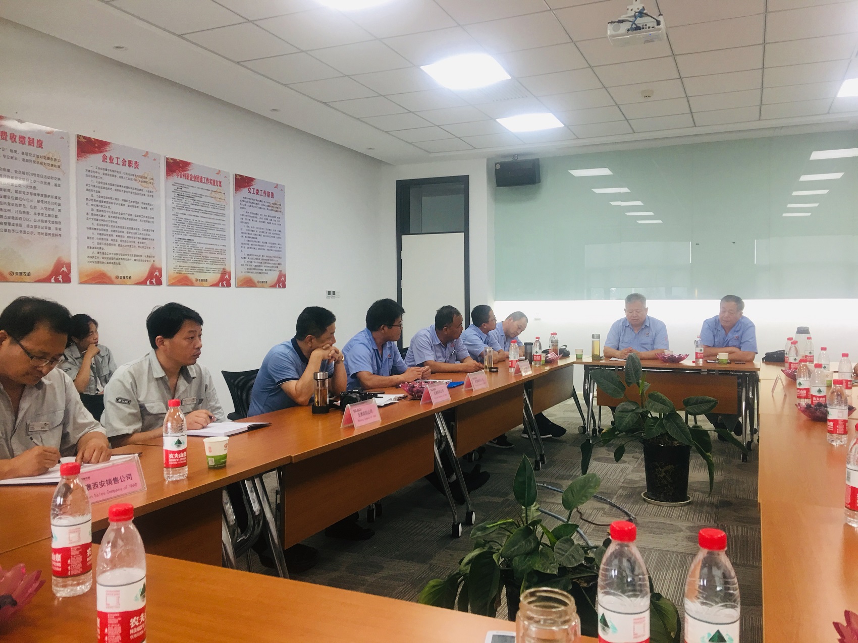 隨后,一行人來(lái)到了會(huì)議室舉行了座談會(huì),亞澳西安公司王總表示,本次來(lái)到南陽(yáng)公司的目的是為了學(xué)習(xí)了解南陽(yáng)工廠(chǎng)生產(chǎn)的產(chǎn)品,反饋目前銷(xiāo)售中存在的問(wèn)題,同時(shí)通過(guò)對(duì)南陽(yáng)工廠(chǎng)的理解激發(fā)一下員工對(duì)未來(lái)市場(chǎng)的銷(xiāo)售信心。