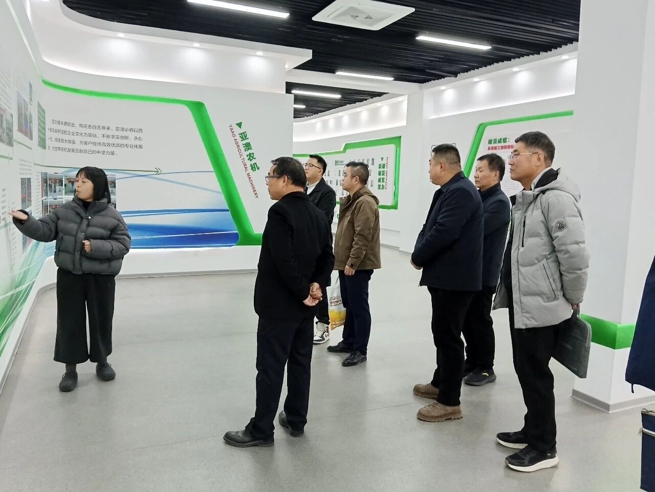 考察團(tuán)先后走進(jìn)企業(yè)文化展廳、產(chǎn)品展廳及核心生產(chǎn)線,通過實地觀摩智能農(nóng)機裝配流程、近距離查看新型農(nóng)機裝備性能、現(xiàn)場問詢技術(shù)研發(fā)細(xì)節(jié)等方式,全方位了解企業(yè)在生產(chǎn)制造、技術(shù)創(chuàng)新、文化建設(shè)等方面的發(fā)展成果。